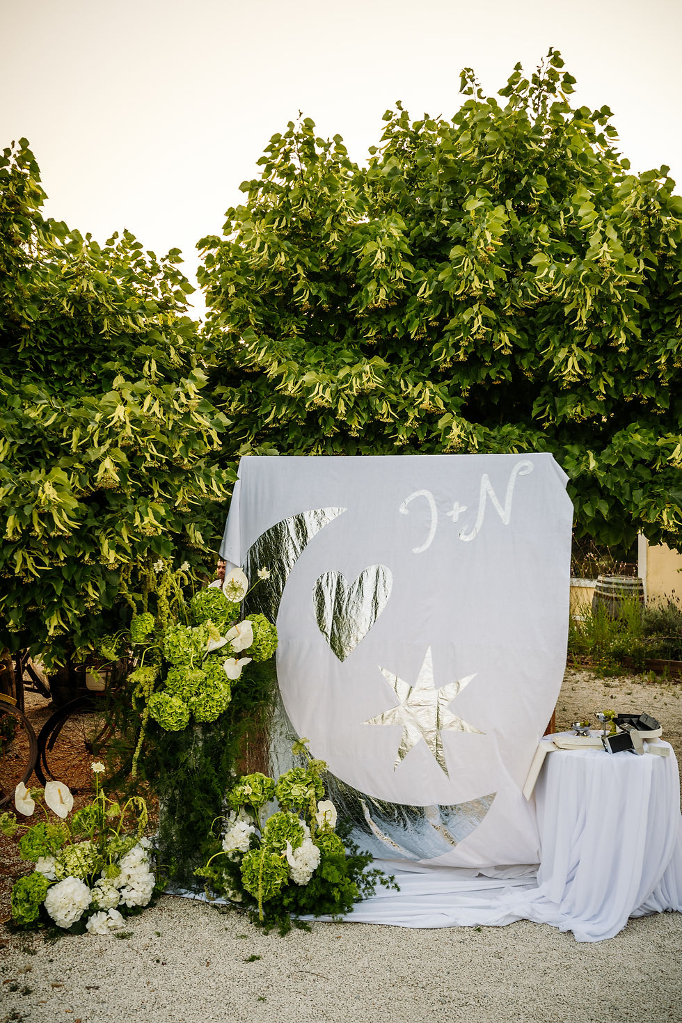 Set among the vines of a Corfu vineyard, this wedding brought together natural surroundings and thoughtful, understated styling. A palette of soft greens and earthy neutrals shaped the design, with layered linens and organic floral touches weaving gently through the tablescape. Simple, elegant details were chosen with quiet intention, allowing the beauty of the landscape to remain at the centre. As day gave way to evening, the setting unfolded into a relaxed celebration, filled with gentle light, warm conversation, and moments of connection beneath the grapevines.