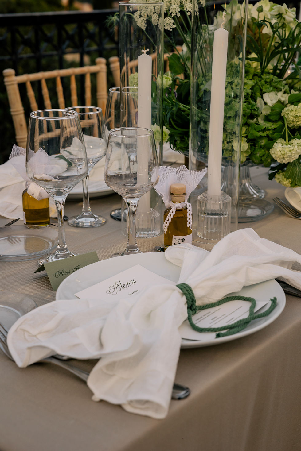 Set in Porto Heli, this wedding blends natural surroundings with understated styling in greens and whites. Simple linens and abundant greenery created a calm, balanced atmosphere, framed by sea and sky.